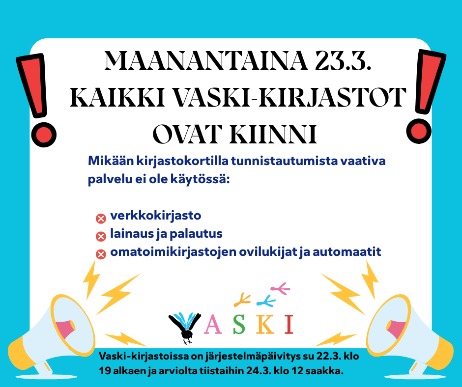 11.1.2026 klo 08:00 - 10.5.2026 klo 17:00Aikuisten kirjastoilta