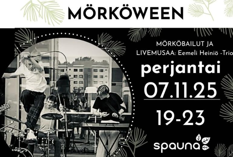 MÖRKÖWEEN pe 7.11.25 klo 19 – 23 Ohjelmassa mm.– livemusaa; valloittavat nuoret lahjakkuudet: Eemeli Heiniö -Trio!!– Mörköween -tietovisa– pukeudu teemaan – mitä nolompi, sitä parempi – Spaunan mustaa Mörkö-pizzaa!!!!– karmeaa karaokea (jos juhlakansa sitä haluaa) TERVETULOA!!! Vapaa pääsy Spauna, Vuosnaistentie 617, Kustavi …