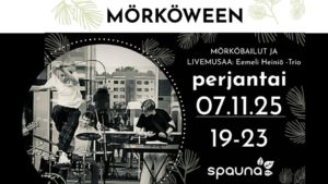 Mörköween: mm. live-musaa Eemeli Heiniö-Trio, karmea tietovisa & karaokea