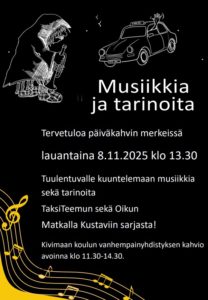 Teemu ja Oikku: Matkalla Kustaviin – musiikkia ja tarinoita. Elävä kuva yhdistyy tarinoihin ja musiikkiin.